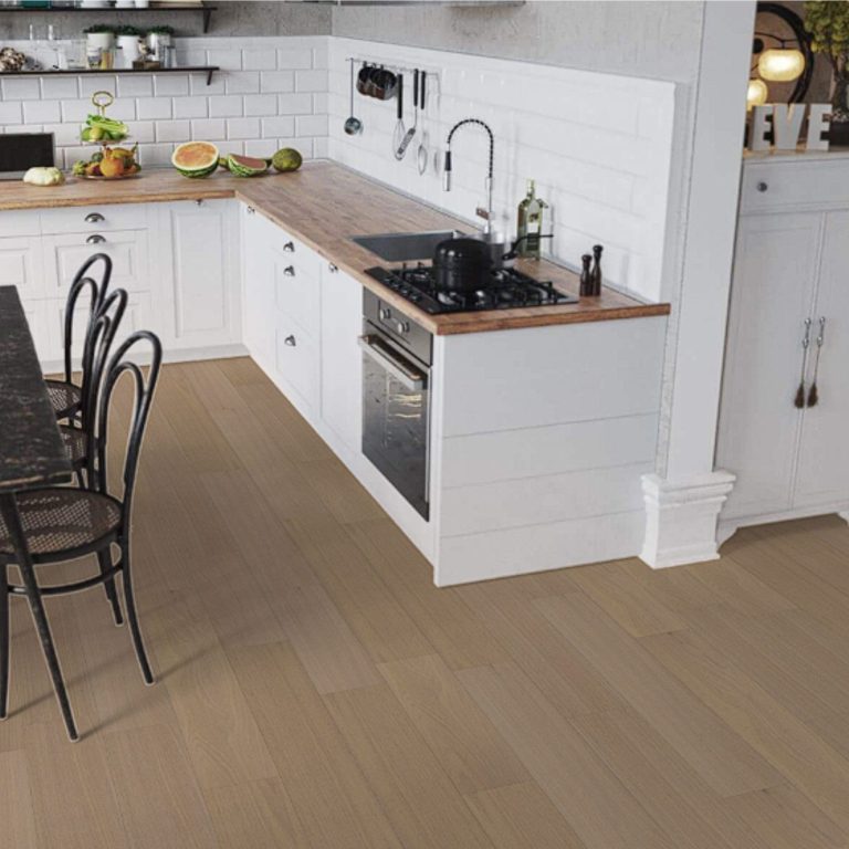 Luxury Vinyl, made primarily of PVC, realistically imitates the appearance of natural wood or stone, but offers greater durability, water resistance, and ease of maintenance.